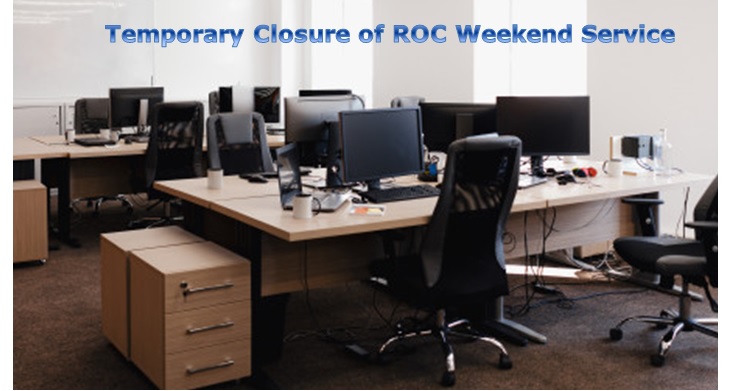 DetailsDear e-ROC Customers, In the interest of the health and safety of our ROC customers due to COVID-19 preventing situation, we will be temporarily closing our weekend service in the Department of Registrar of Companies. Please stay safe and thank you for your understanding and support. Thank you, Department of Registrar of Companies